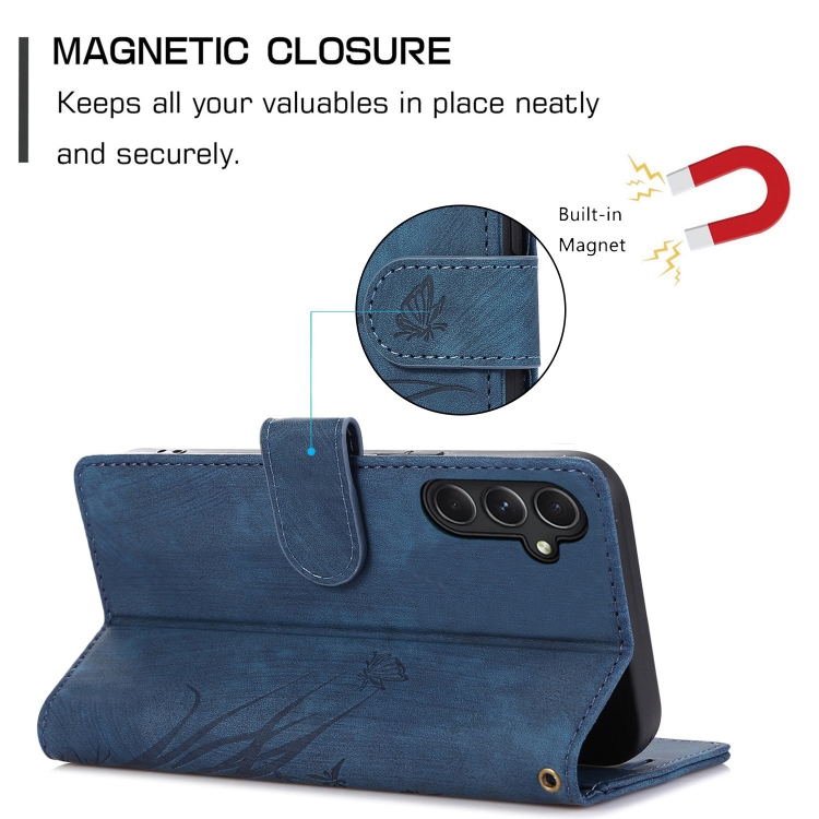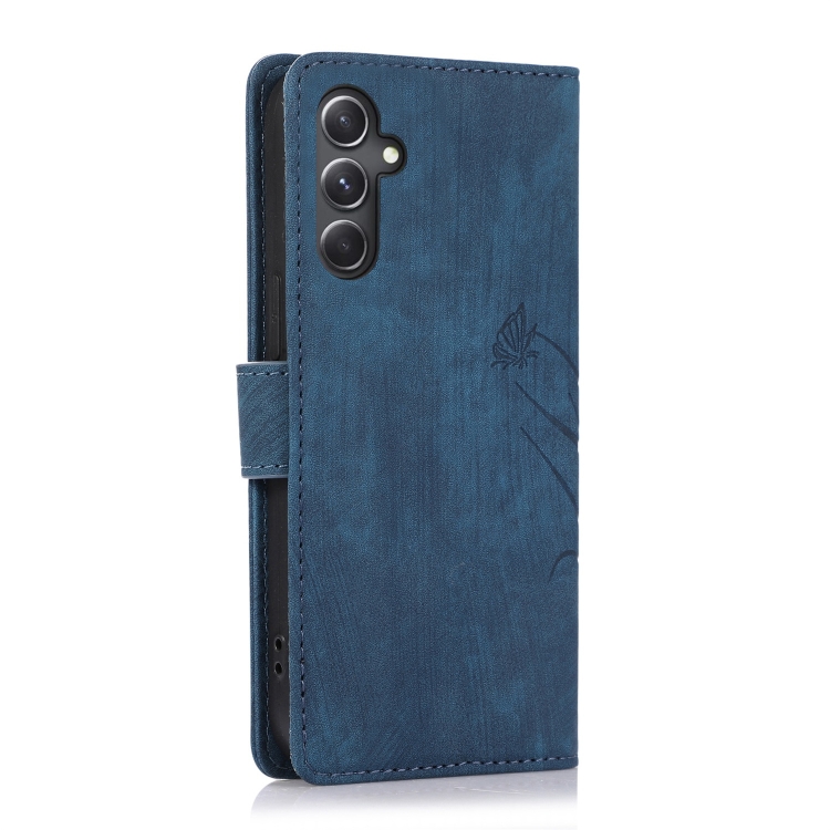Funda de Cuero Samsung Galaxy A24 4G Global Orchid Butterfly En Relieve (Azul)