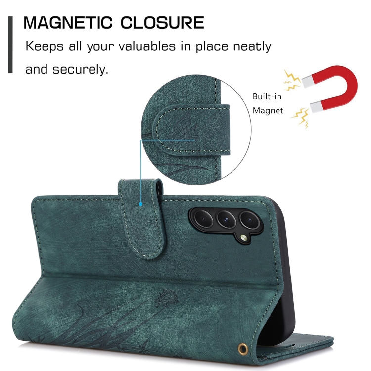 Funda de Cuero Samsung Galaxy A24 4G Global Orchid Butterfly En Relieve (Verde)