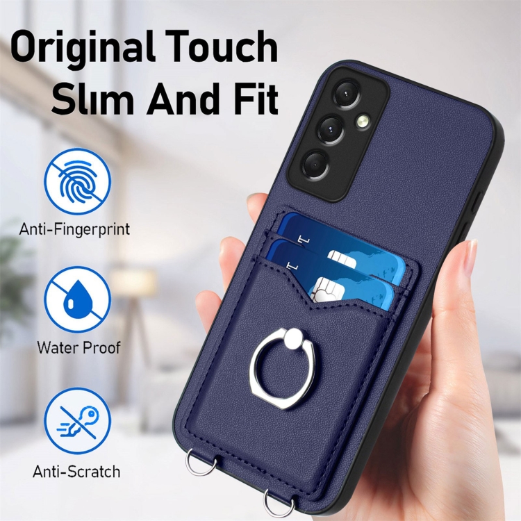 Estuche para Teléfono Samsung Galaxy A24 4G R20 con Soporte para Tarjeta con Anillo (Azul)