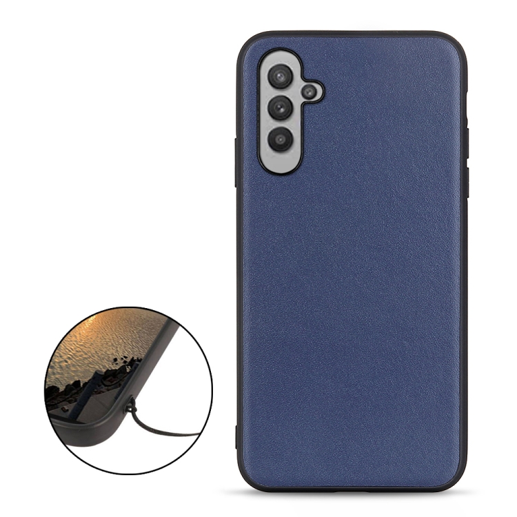 Funda de Teléfono Samsung Galaxy A24 Cuero Genuino Textura Piel de Cordero (Azul)