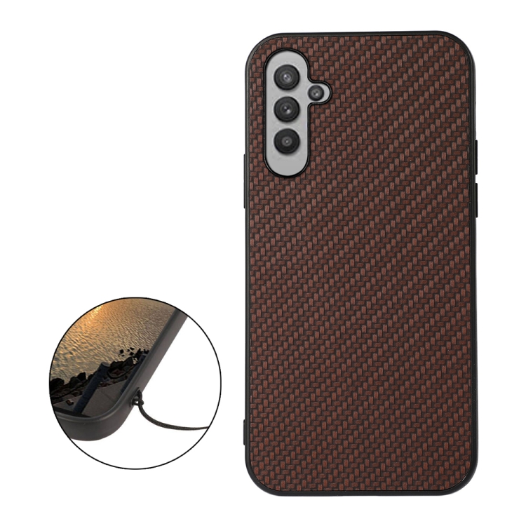 Funda de Teléfono Samsung Galaxy A24 PU Textura Fibra de Carbono con Orificio Preciso (Marrón)