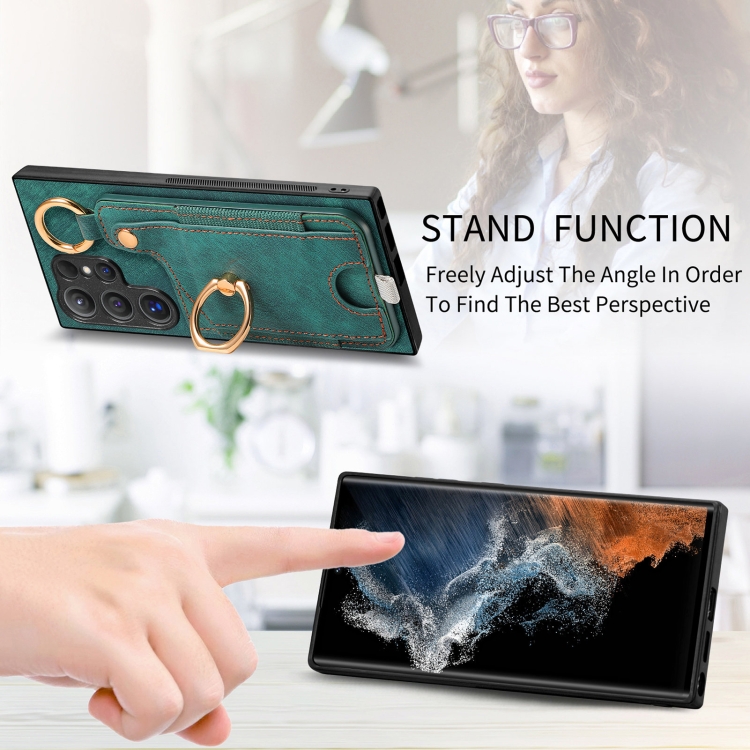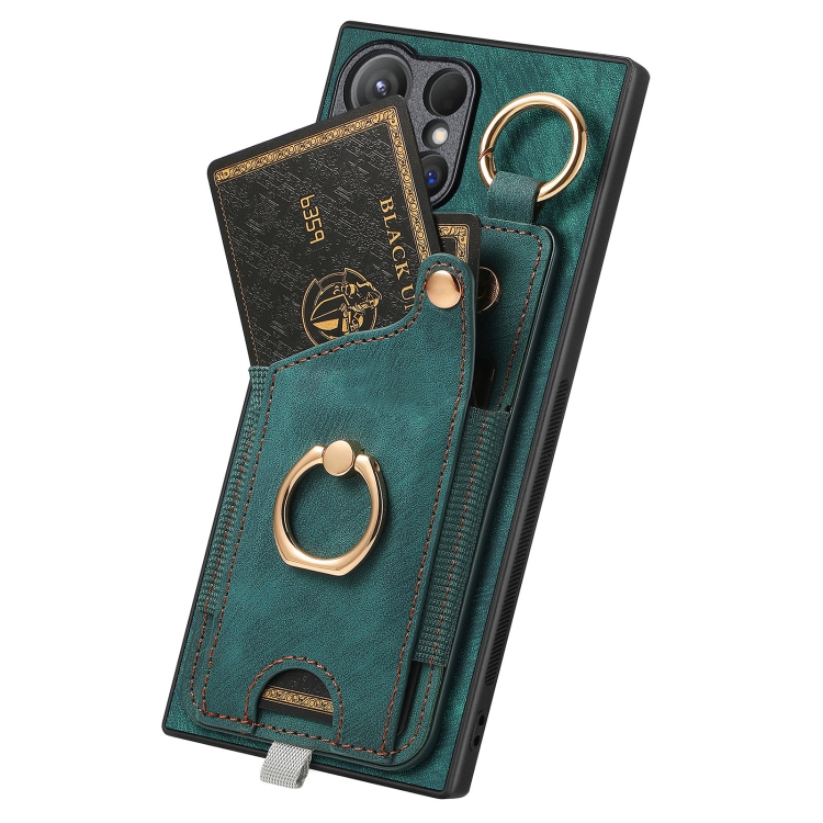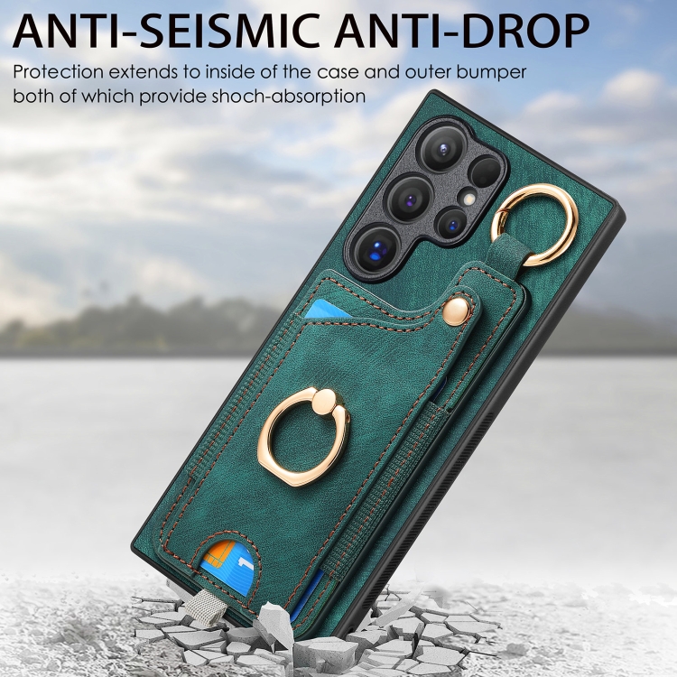 Funda para Teléfono Samsung Galaxy A30 A20 M10S con Bolsa para Tarjeta Anillo y Lazo para Colgar (Verde)
