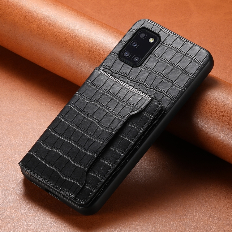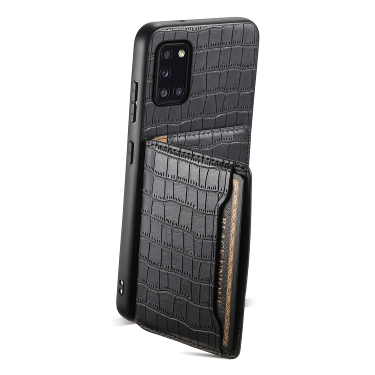 Estuche para Teléfono Samsung Galaxy A31 4G Diseño Bolsa para Tarjetas Textura de Cocodrilo (Negro)