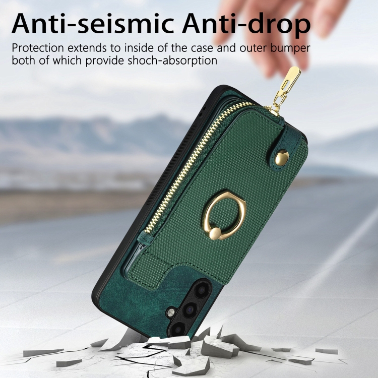 Funda para Teléfono Samsung Galaxy A31 Anillo Cuero Cruzado Cremallera Billetera (Verde)