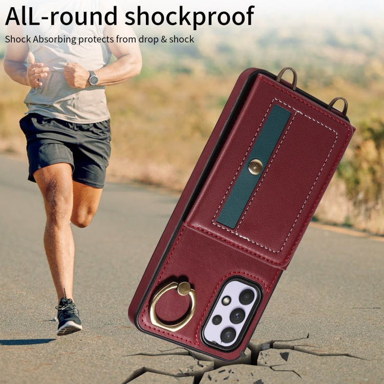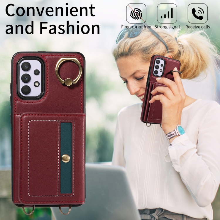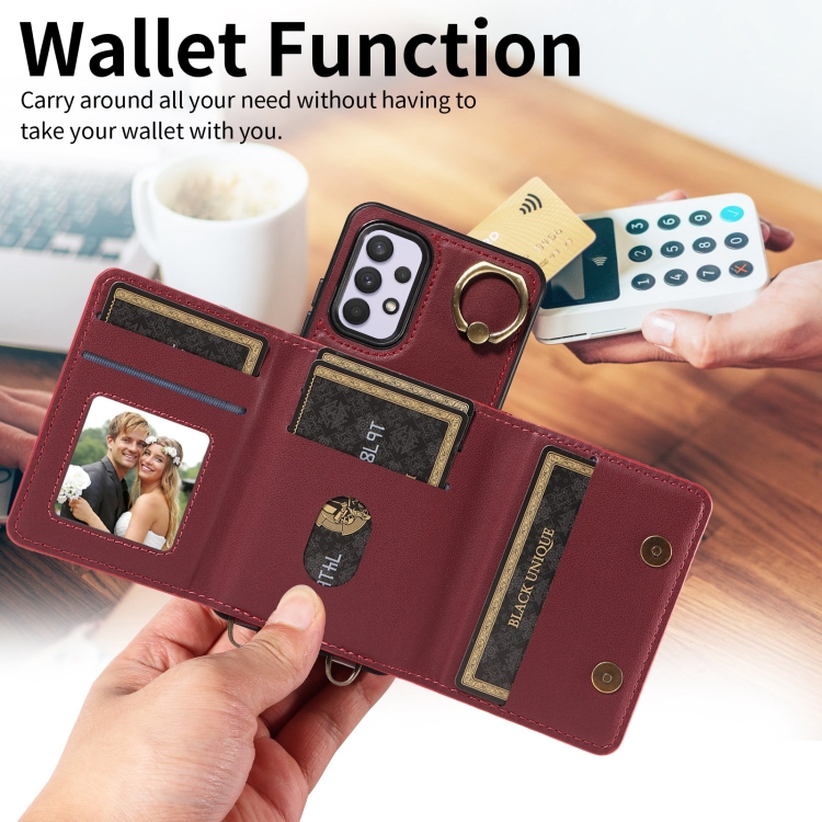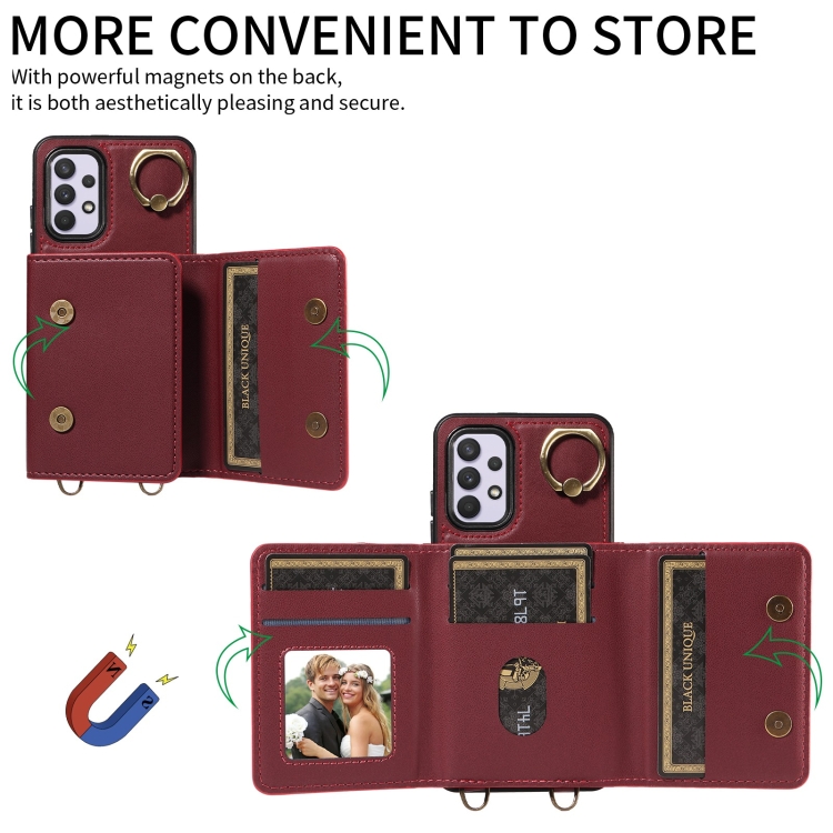 Funda de Cuero Crossbody Wallet Bag con Ring Holder para Samsung Galaxy A32 4G (Rojo)