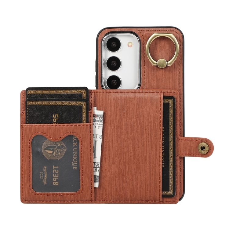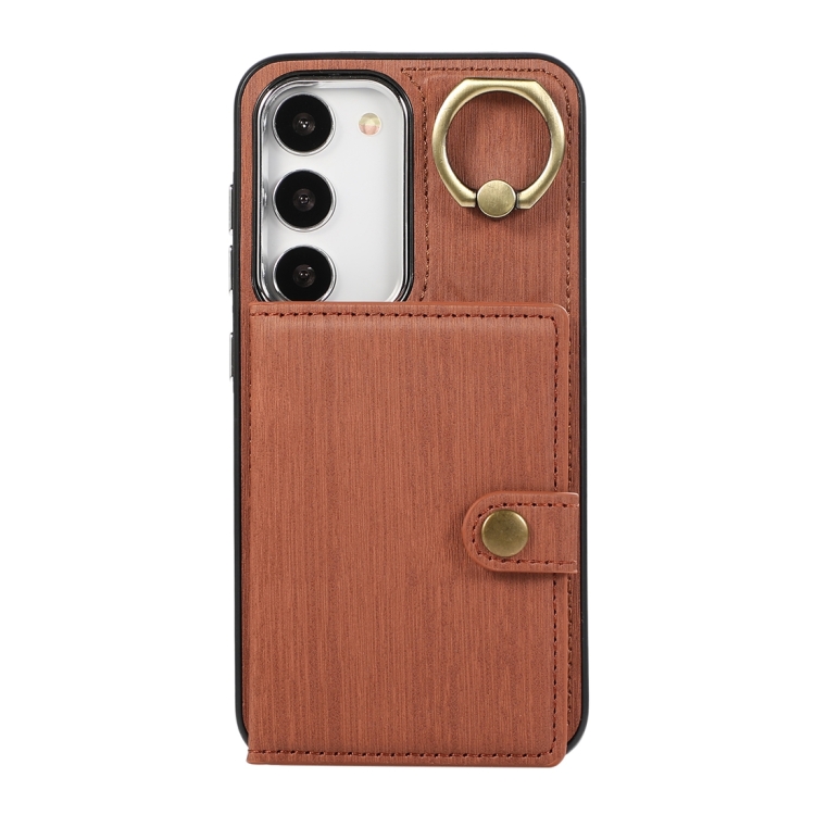 Funda para Teléfono Samsung Galaxy A33 5G con Soporte para Anillo y Billetera con Textura Cepillada (Marrón)