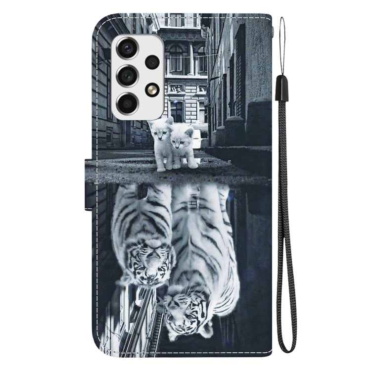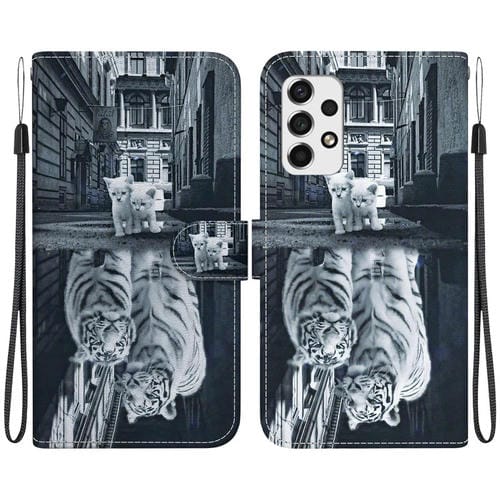 Funda para Teléfono Samsung Galaxy A33 5G Cuero Dibujo Coloreado Textura Cristal (Reflejo de Tigre Gato)