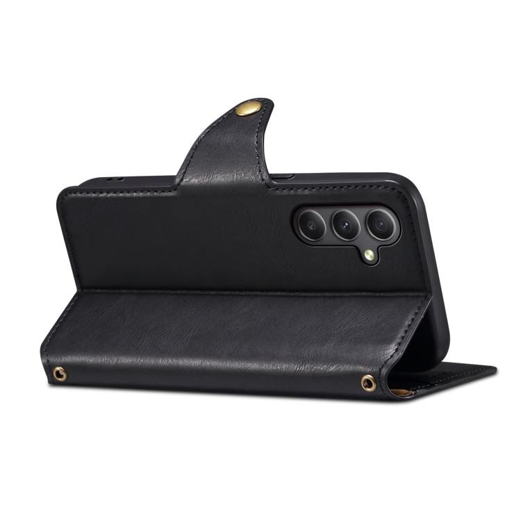 Funda para Teléfono Samsung Galaxy A34 5G Denior Textura Piel de Vaca Estilo Billetera (Negro)