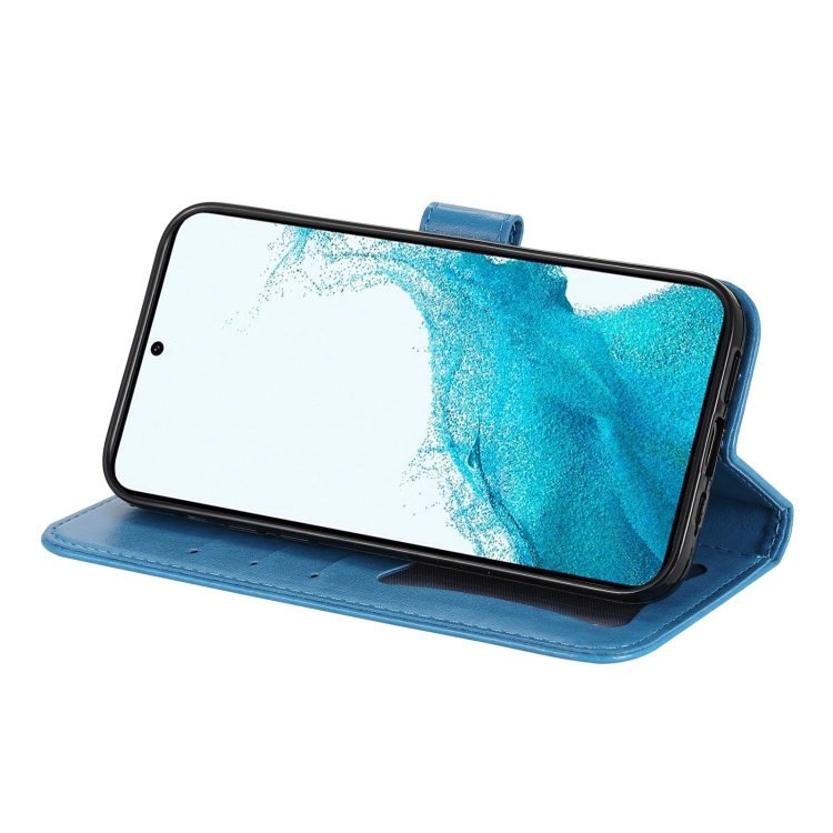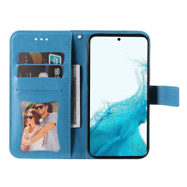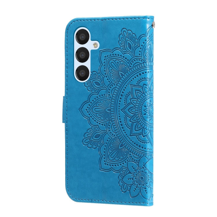 Estuche para Teléfono Samsung Galaxy A34 5G Cuero Estampado Flores 7 Pétalos (Azul)