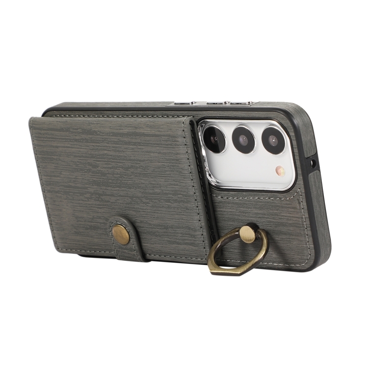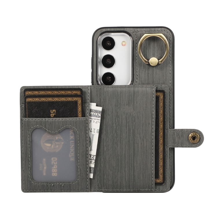 Funda para Teléfono Samsung Galaxy A34 5G Soporte para Anillo y Billetera Textura Cepillada (Gris)