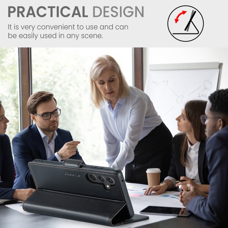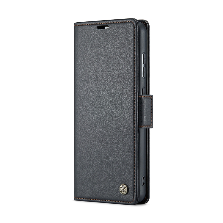 Funda de Cuero Caseme 023 para Samsung Galaxy A35 5G con Hebilla de Mariposa y Textura Litchi Antirrobo (Negro)