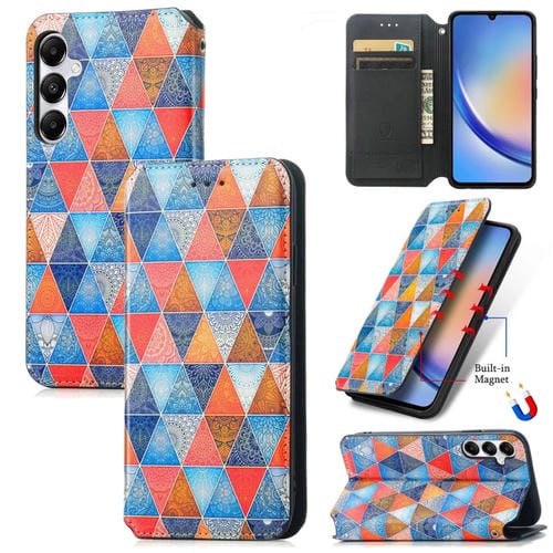 Funda para Samsung Galaxy A35 5G Caseneo Cuero Magnética Colorida (Rombo Mandala)