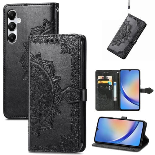 Funda para Teléfono Samsung Galaxy A35 5G Cuero con Relieve de Flor de Mandala (Negro)
