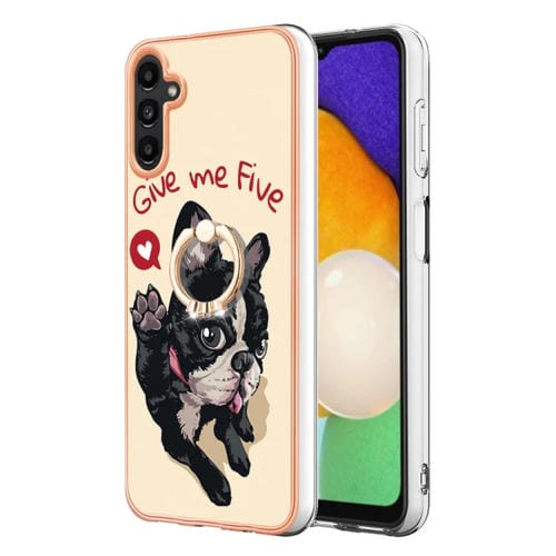 Estuche para Teléfono Samsung Galaxy A35 Imd Doble Cara con Galvanoplastia y Soporte para Anillo (Lucky Dog)