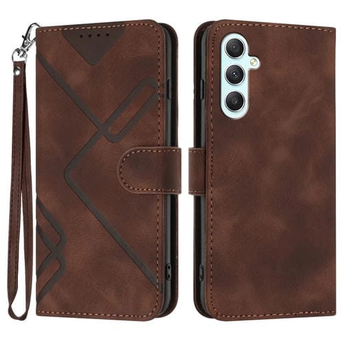 Funda para Samsung Galaxy A35 Cuero Sensación de Piel Patrón de Líneas (Café)