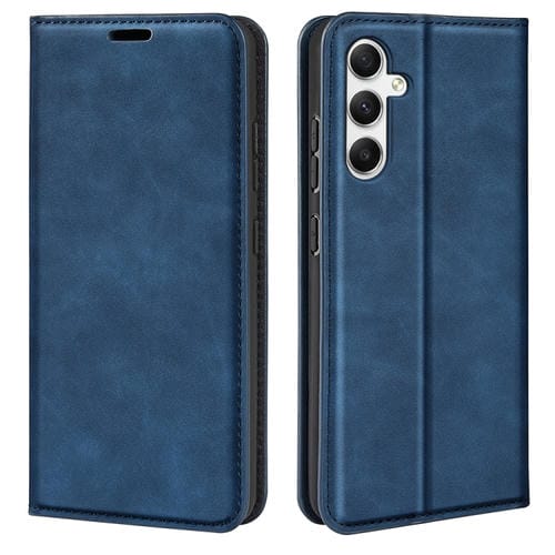 Funda para Teléfono Samsung Galaxy A35 Cuero Succión Magnética Piel Retro (Azul Oscuro)