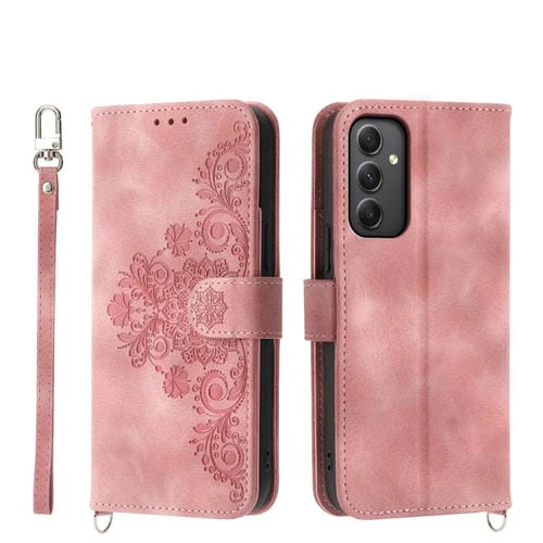 Funda para Teléfono Samsung Galaxy A35 Cuero con Billetera en Relieve y Flores (Rosa)