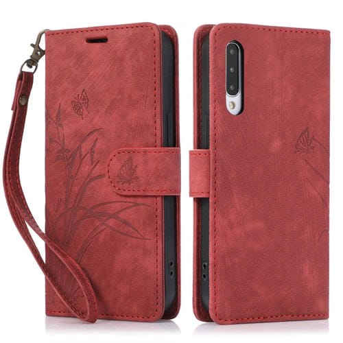 Funda para Teléfono Samsung Galaxy A50 A50S Cuero Relieve Mariposa Orquídea (Rojo)