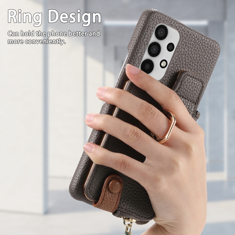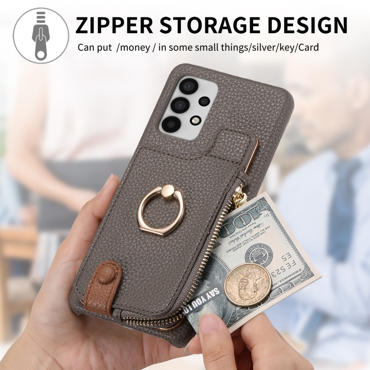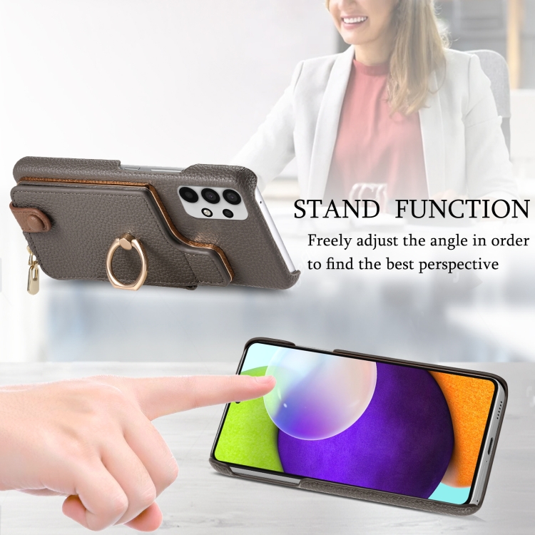 Funda para Samsung Galaxy A52 Litchi Leather Oil Edge Ring Zipper Wallet Back (Gris)