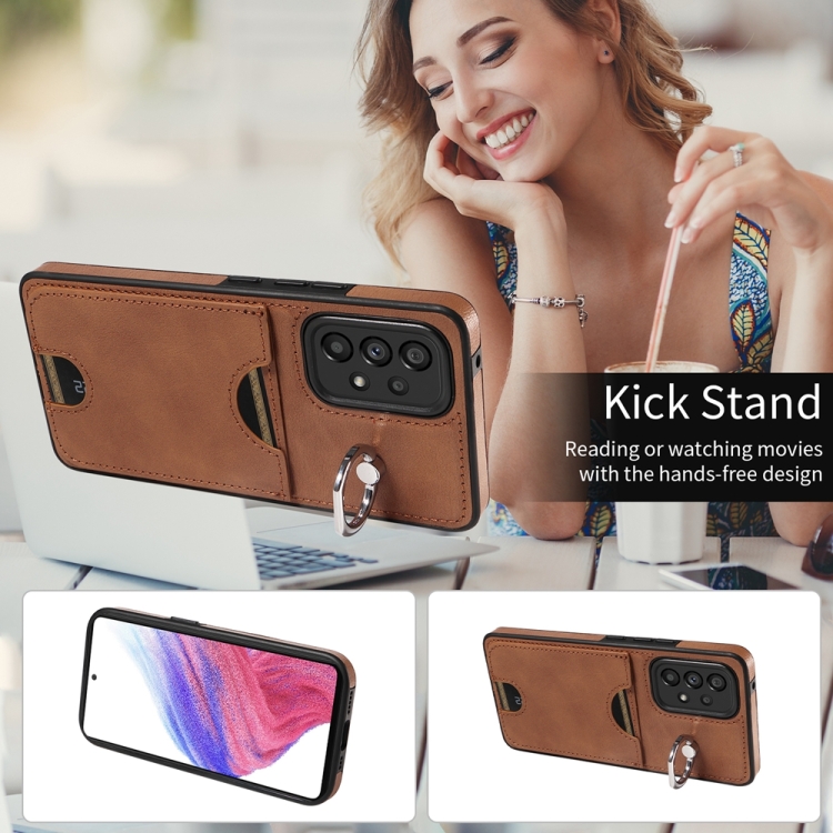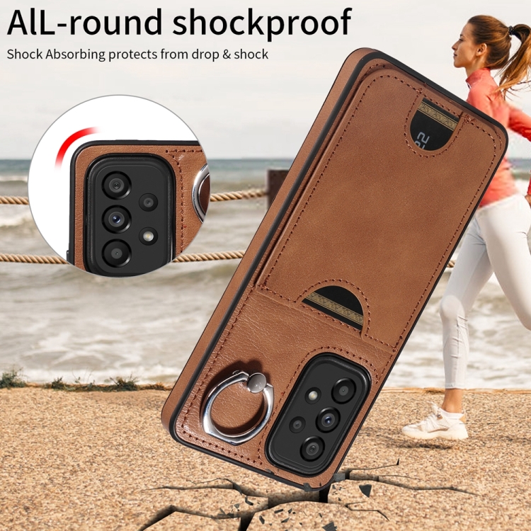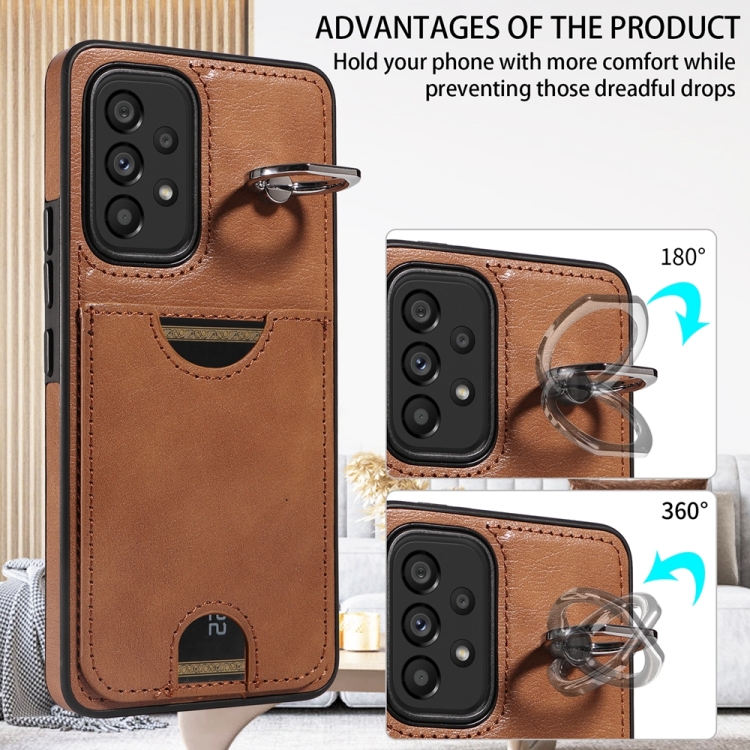 Funda para Teléfono Samsung Galaxy A53 5G con Soporte para Anillo y Ranura para Tarjeta (Marrón)