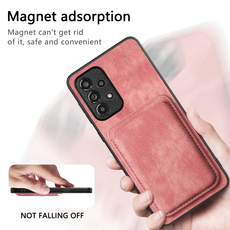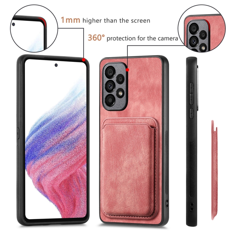 Funda de Teléfono Samsung Galaxy A53 Magnética con Bolsa de Tarjeta de Cuero Retro (Rosa)