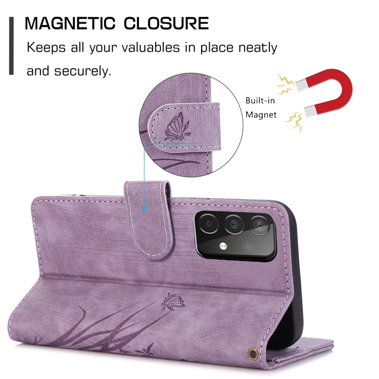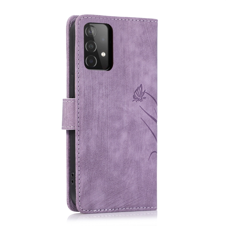 Funda para Teléfono Samsung Galaxy A53 de Cuero con Relieve de Mariposa Orquídea (Púrpura)