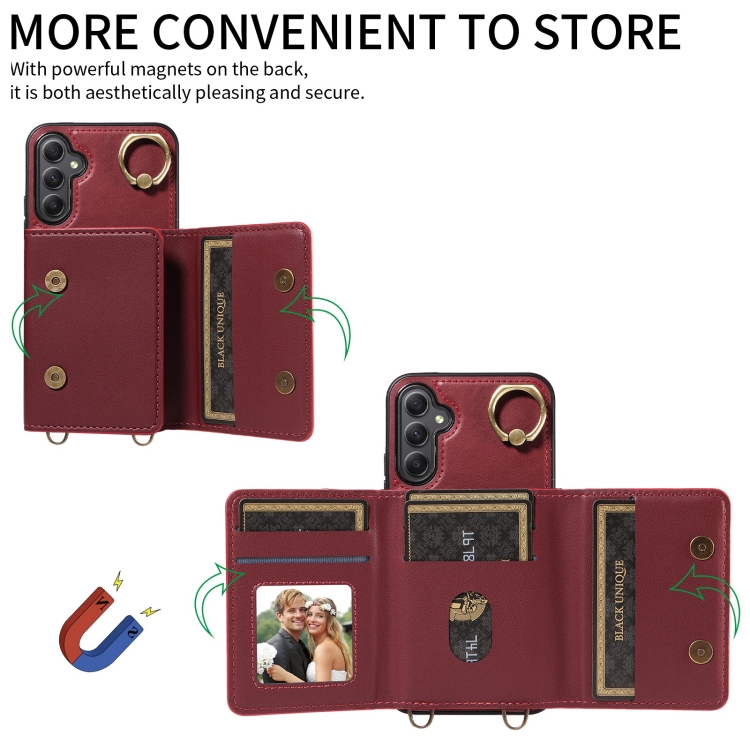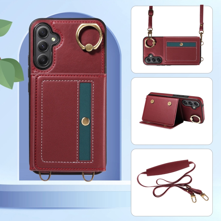 Funda de Cuero para Samsung Galaxy A54 5G Crossbody Wallet Bag con Ring Holder (Rojo)