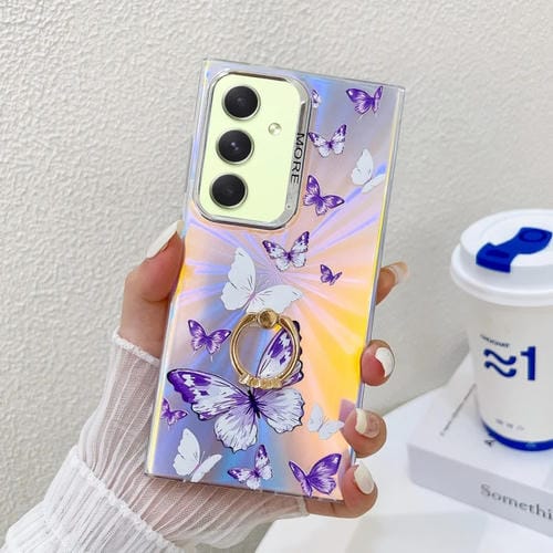 Estuche para teléfono Samsung Galaxy A54 5G con soporte para anillo de mariposa láser y galvanoplastia (Mariposas Moradas Blancas Ab6)