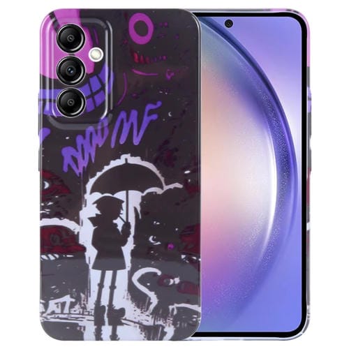 Funda para Teléfono Samsung Galaxy A54 5G PC con Orificio Preciso y Patrón Pintado (Paraguas Negro y Morado)