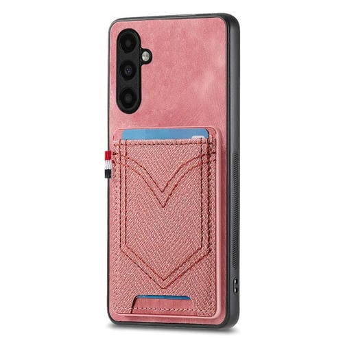 Funda para Teléfono Samsung Galaxy A54 5G Piel de Cuero Textura Vaquera Ranura para Tarjeta (Rosa)