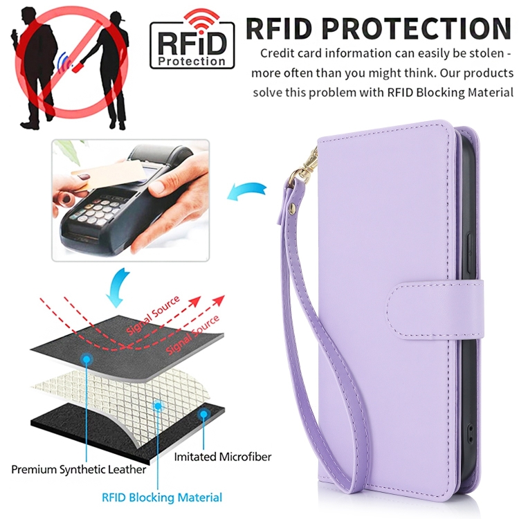 Funda para Teléfono Samsung Galaxy A54 5G Cuero Rfid con Billetera MultiTarjeta (Púrpura Claro)