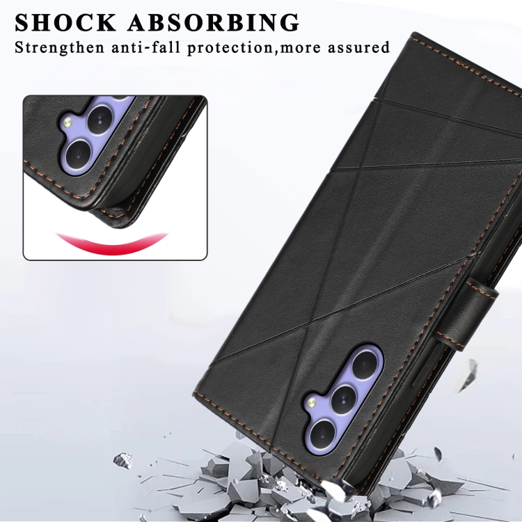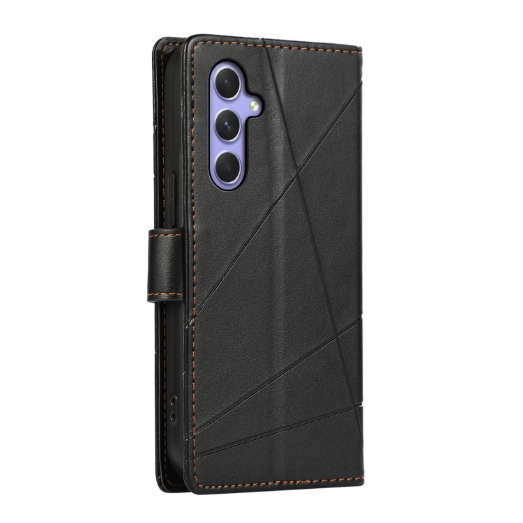 Funda para Teléfono Samsung Galaxy A54 5G PU Cuero Genuino Textura Línea En Relieve (Negro)