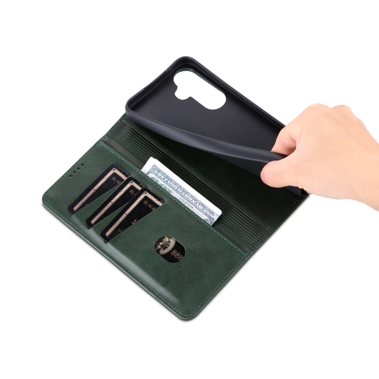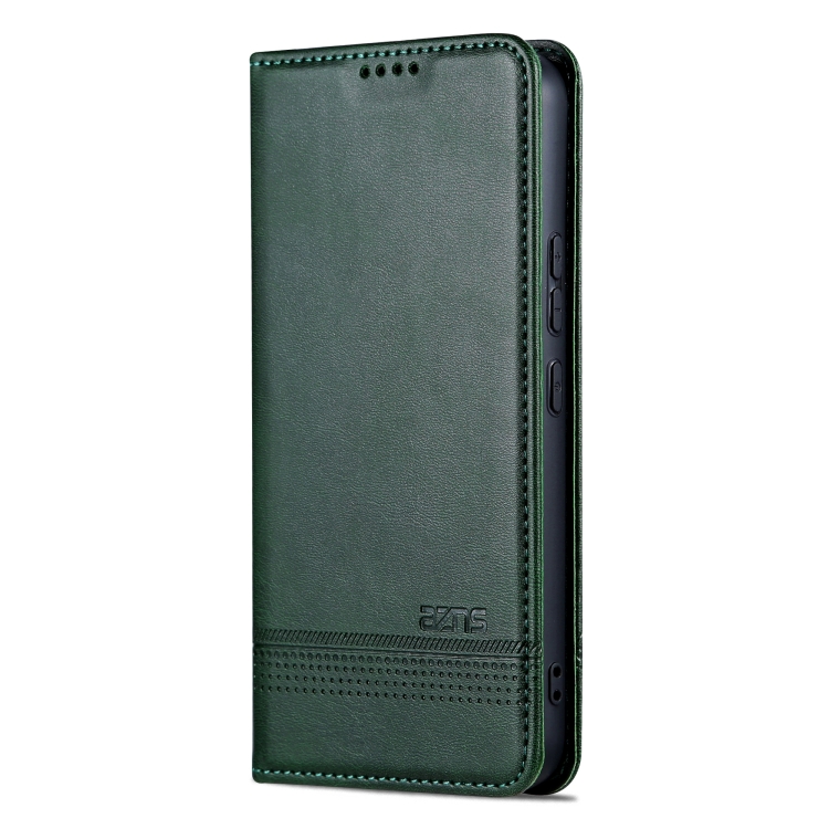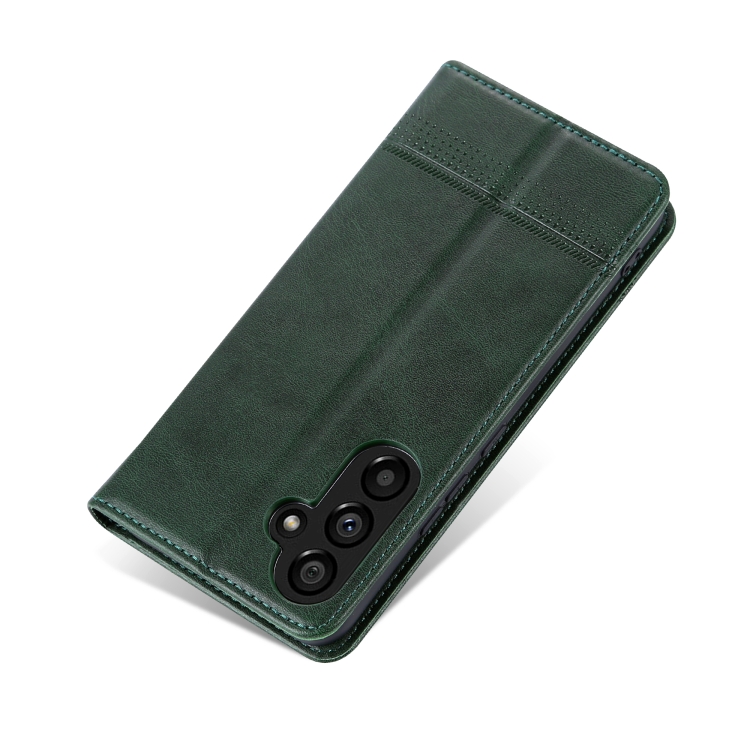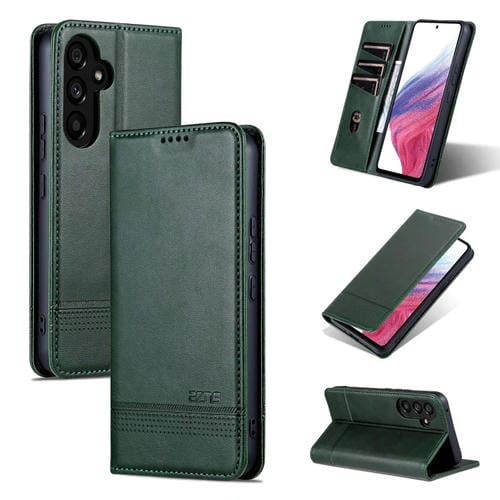 Funda para Teléfono Samsung Galaxy A55 5G Azns Cuero con Tapa y Textura de Pantorrilla Magnética (Verde Oscuro)