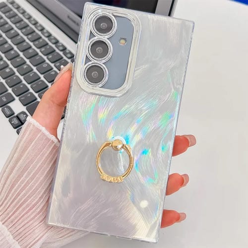 Estuche para teléfono Samsung Galaxy A55 5G TPU con soporte para anillo y textura brillante (Hilo de plumas blancas)