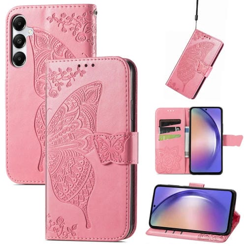 Funda para Teléfono Samsung Galaxy A55 5G Cuero Relieve Flor de Amor y Mariposa (Rosa)