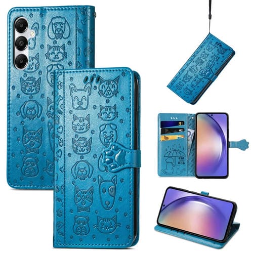 Funda para Teléfono Samsung Galaxy A55 5G Cuero Relieve Perro y Gato (Azul)