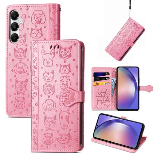 Funda para Teléfono Samsung Galaxy A55 5G Cuero Relieve Perro y Gato (Rosa)
