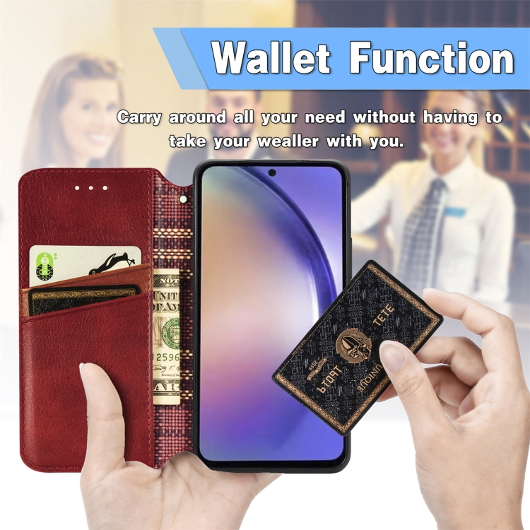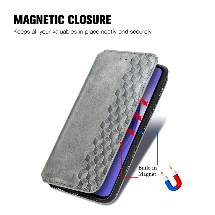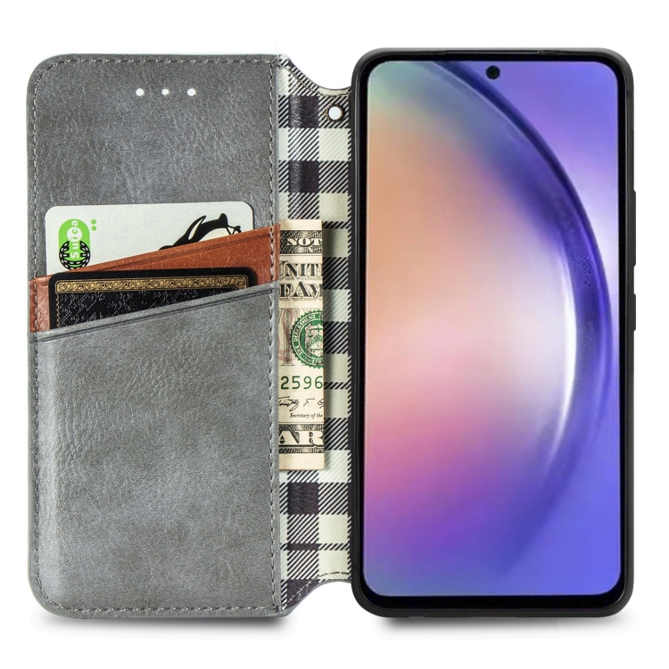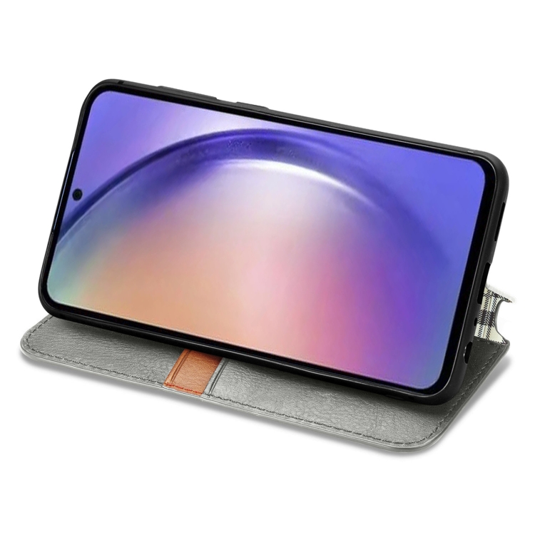 Funda para Teléfono Samsung Galaxy A55 5G Cuero Magnético Prensado Rejilla Cúbica (Gris)