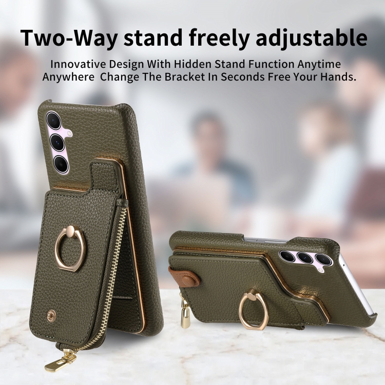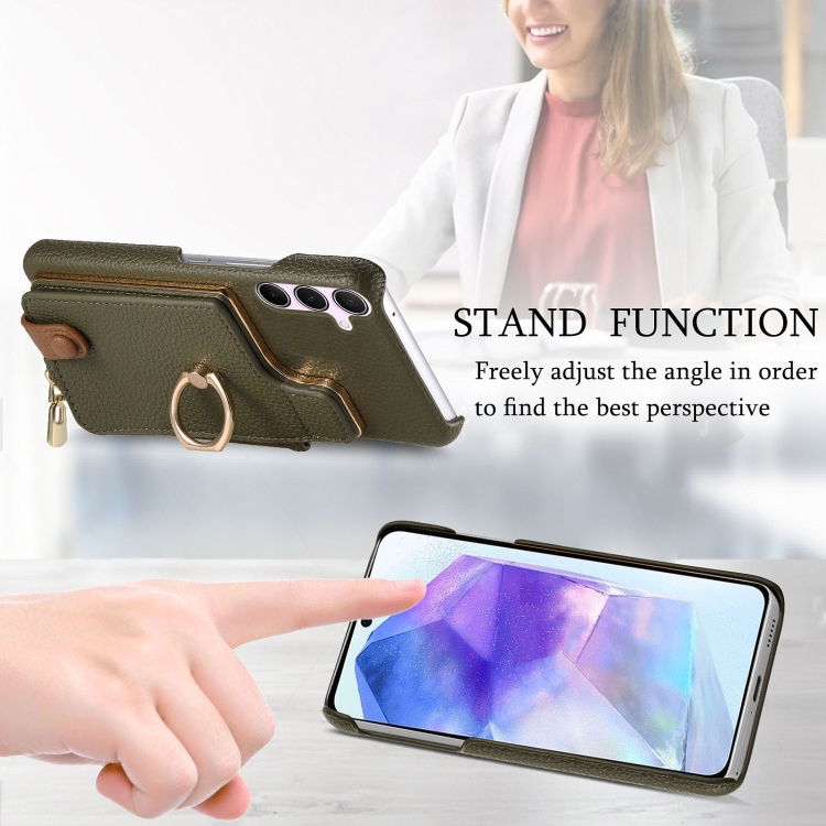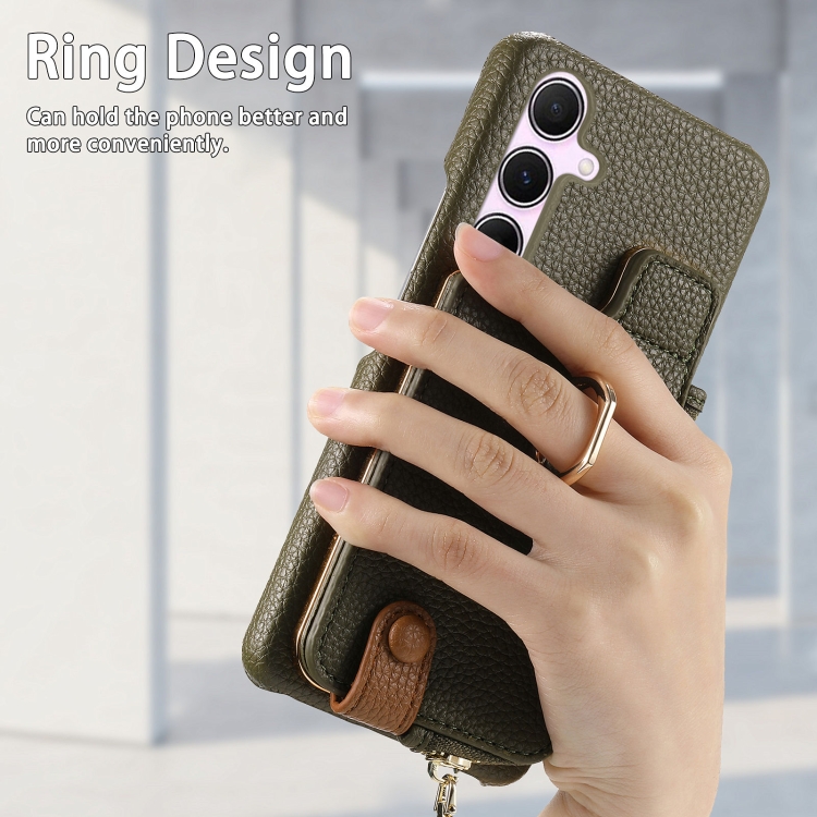 Funda para Samsung Galaxy A55 5G Litchi Leather Oil Edge Ring Zipper Wallet Back (Verde)