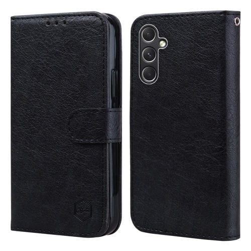 Funda para Teléfono Samsung Galaxy A55 5G Sensación de Piel Aceite Textura de Cuero Pu + TPU (Negro)