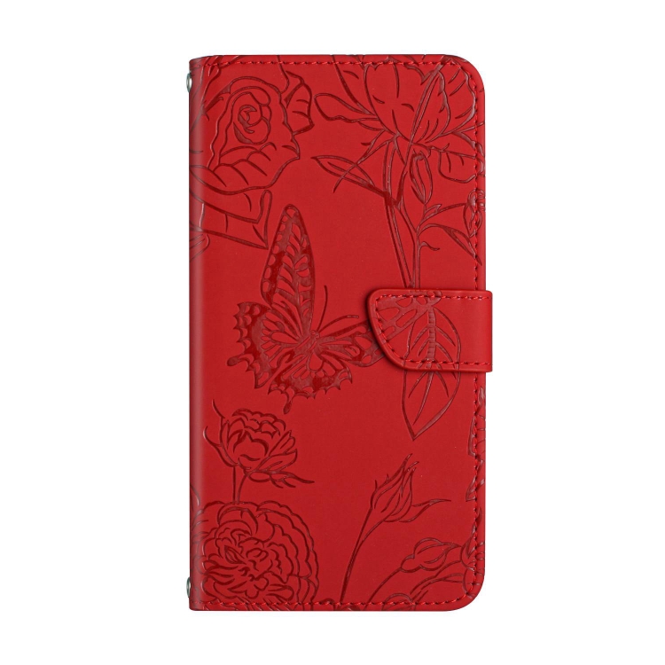 Funda de Cuero para Samsung Galaxy A55 5G Skin Feel Butterfly con Tapa En Relieve (Rojo)