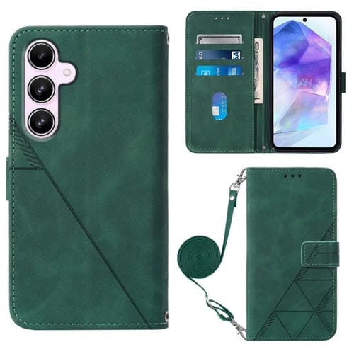 Funda para Samsung Galaxy A55 Crossbody de Cuero con Tapa en Relieve 3D (Verde Oscuro)