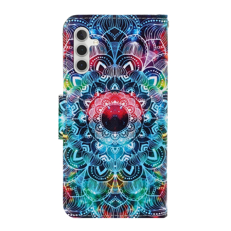 Funda de Cuero para Samsung Galaxy A55 con Tapa y Patrón de Dibujo de Colores (Mandala)