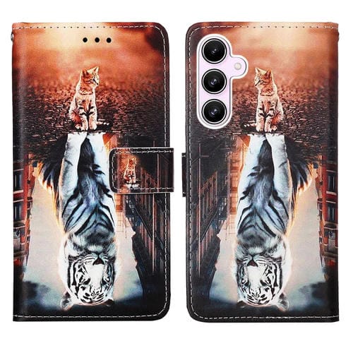 Funda para Teléfono Samsung Galaxy A55 Cuero Tejido Liso Patrón Gatos y Tigres