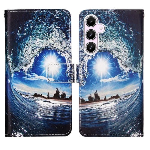 Funda para Teléfono Samsung Galaxy A55 Cuero Tejido Liso Patrón Dibujo Colores (Ondas y Sol)