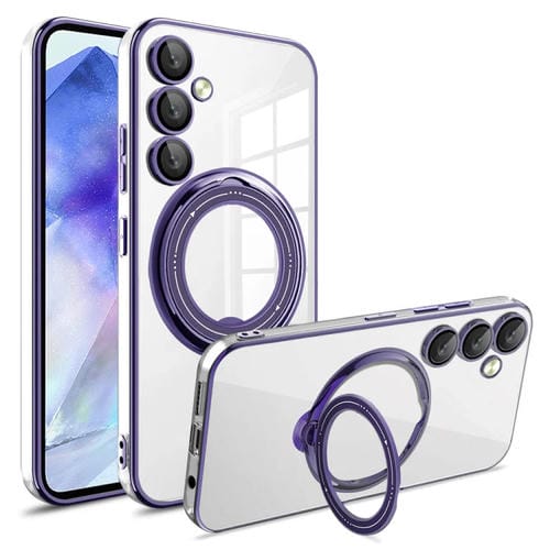 Estuche para Teléfono Samsung Galaxy A55 Galvanoplastia Magsafe Soporte Rotación 360 a Prueba de Golpes (Púrpura Oscuro)