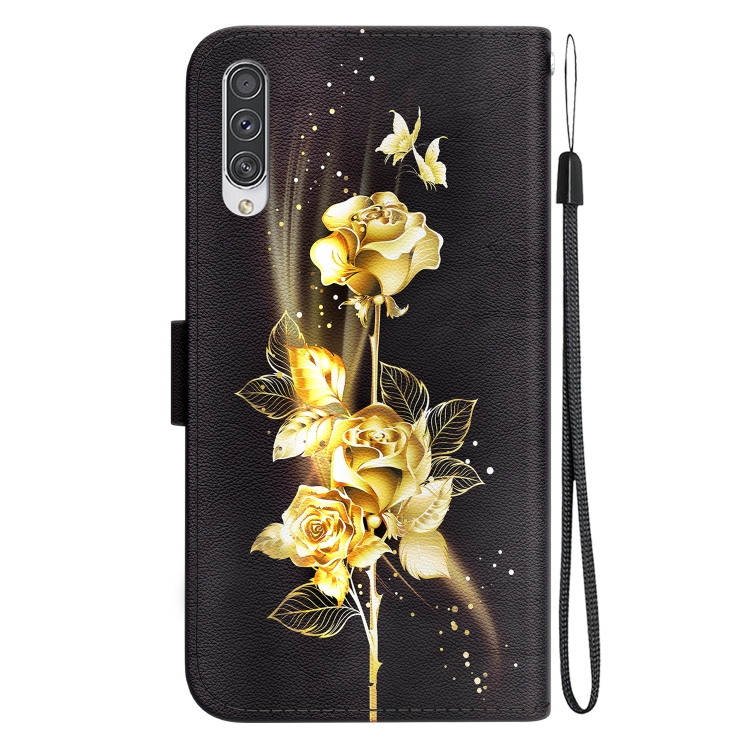 Funda para Teléfono Samsung Galaxy A70 A70S Cuero Dibujo Coloreado Textura de Cristal (Mariposa Dorada Rosa)
