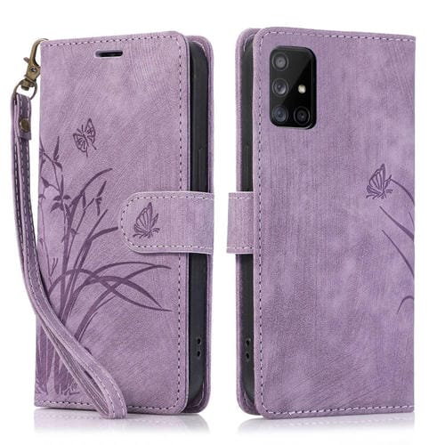 Funda para Teléfono Samsung Galaxy A71 4G Cuero Relieve Mariposa Orquídea (Púrpura)