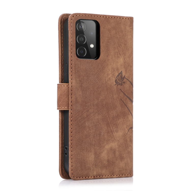 Funda para Teléfono Samsung Galaxy A72 4G 5G Cuero Relieve Mariposa Orquídea (Marrón)