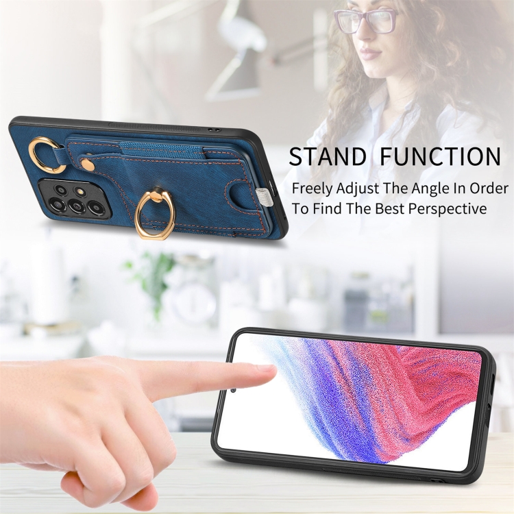 Funda para Samsung Galaxy A73 5G con Bolsa para Tarjeta Anillo y Lazo (Azul)
